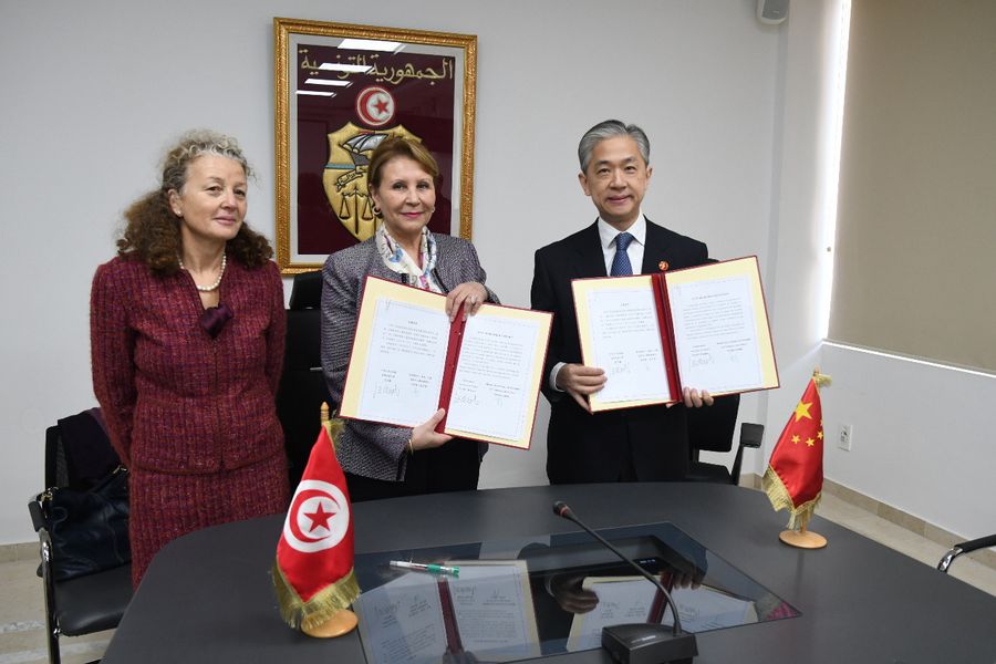 The agreement was signed at an official ceremony in Tunisia's capital Tunis by Tunisian Minister of Women, Family, Children and the Elderly Affairs Naziha Laabidi and Chinese Ambassador to Tunisia Wang Wenbin, in the presence of Lila Peters, representative of the UNICEF in Tunisia.