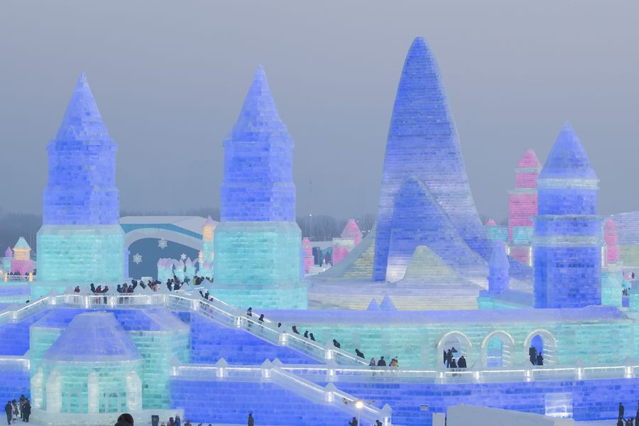 People visit the 36th Harbin Ice and Snow Festival at Harbin Ice-Snow World in Harbin, capital of China's northernmost Heilongjiang Province, Jan. 5, 2020. (Xinhua/Wang Song)