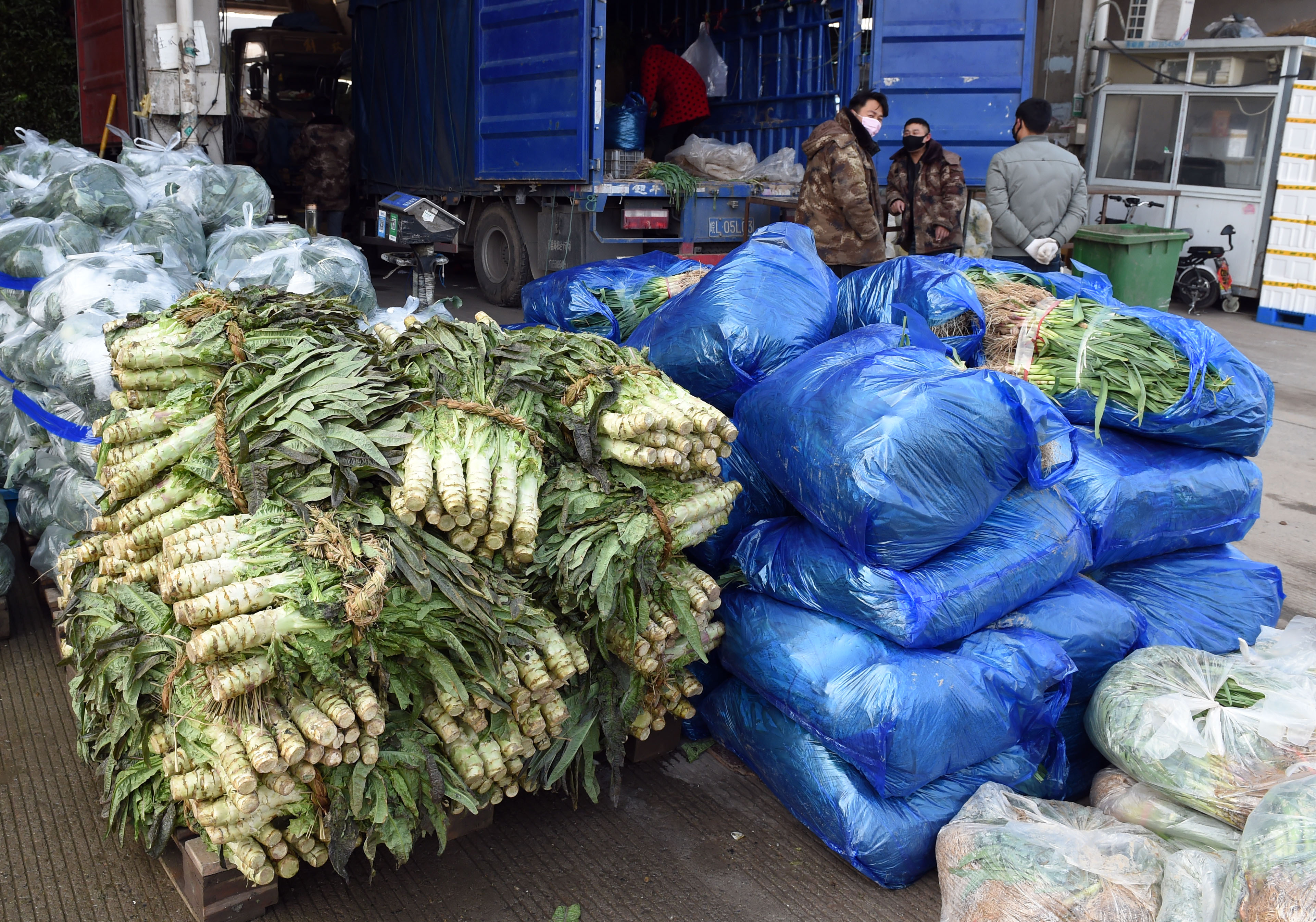 Photo taken on Jan. 30, 2020 shows vegetables to be sold at a market in Nanning, south China's Guangxi Zhuang Autonomous Region. (Xinhua/Lu Boan)