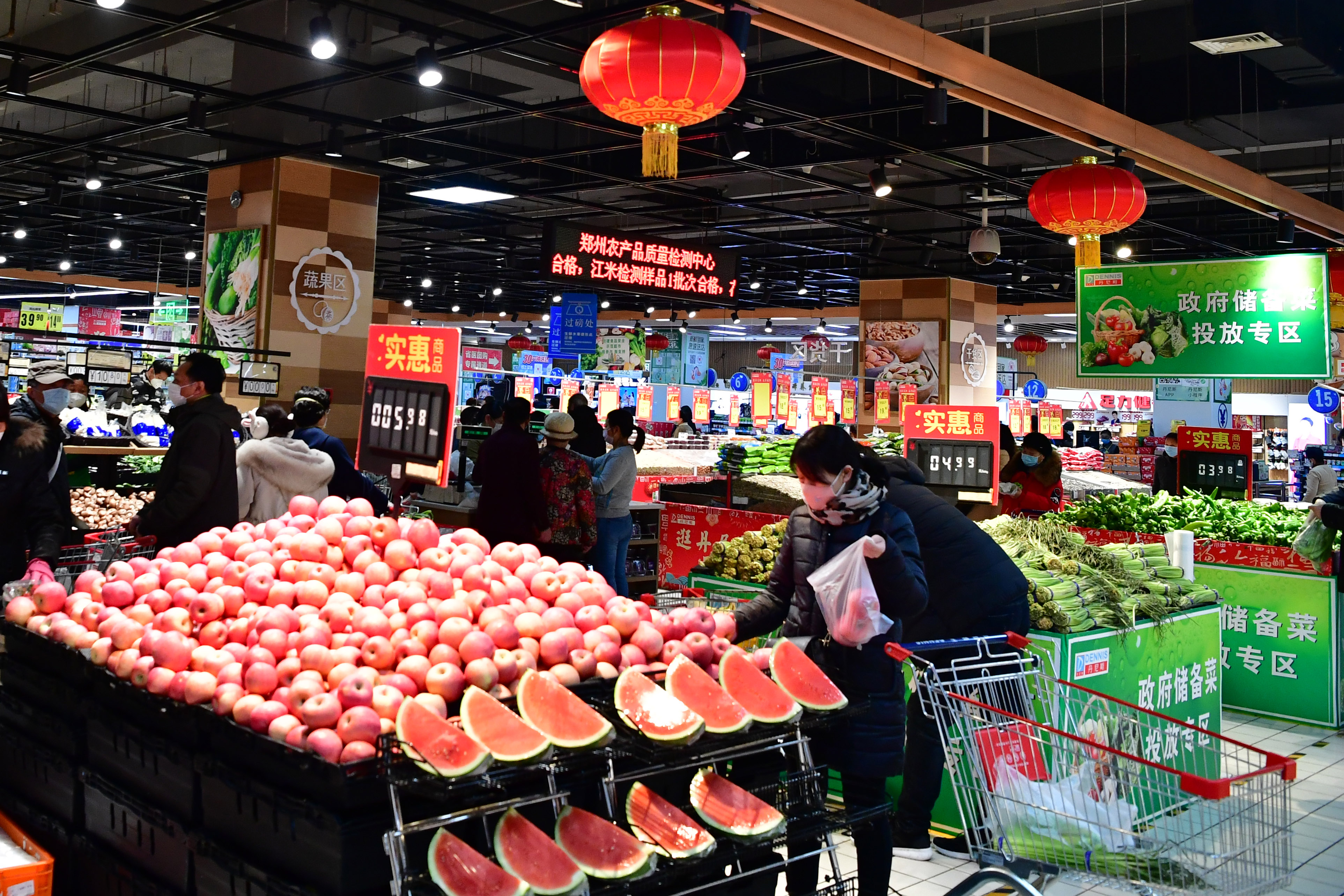 Citizens buy fruits at a supermarket in Zhengzhou, central China's Henan Province, Jan. 30, 2020. (Xinhua/Feng Dapeng)