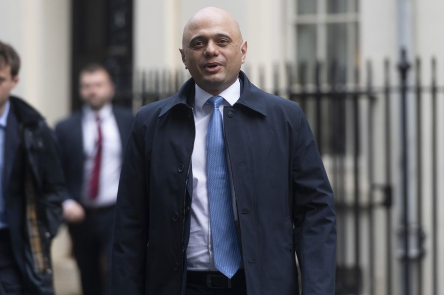Britain's Chancellor of the Exchequer Sajid Javid leaves Downing Street to attend the Prime Minister's Questions in Parliament in London, Britain, Jan. 8, 2020. (Photo by Ray Tang/Xinhua)