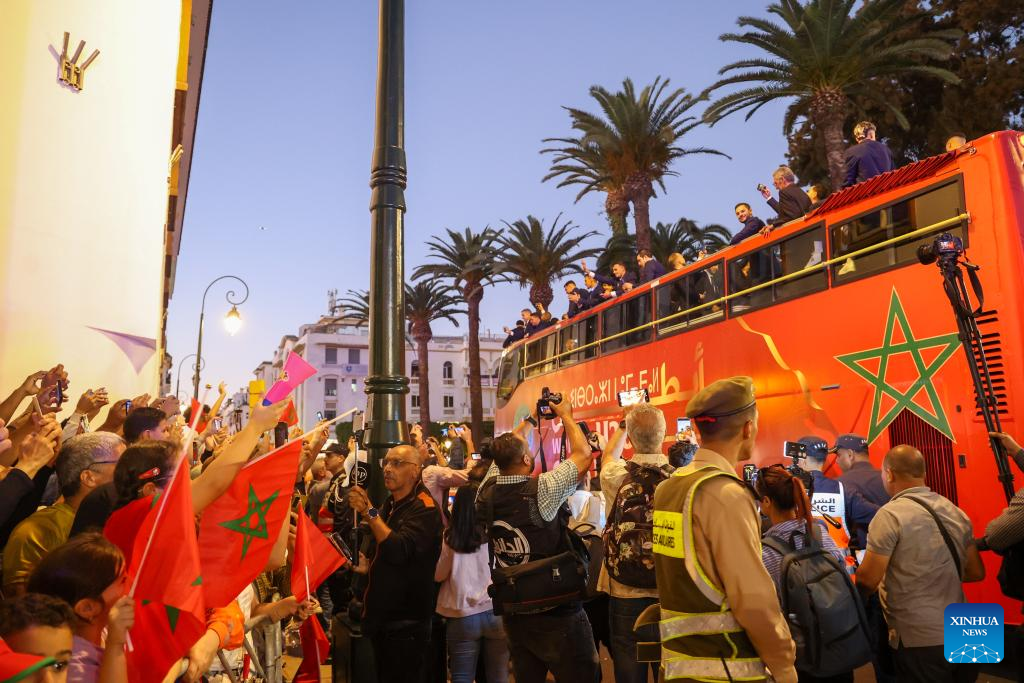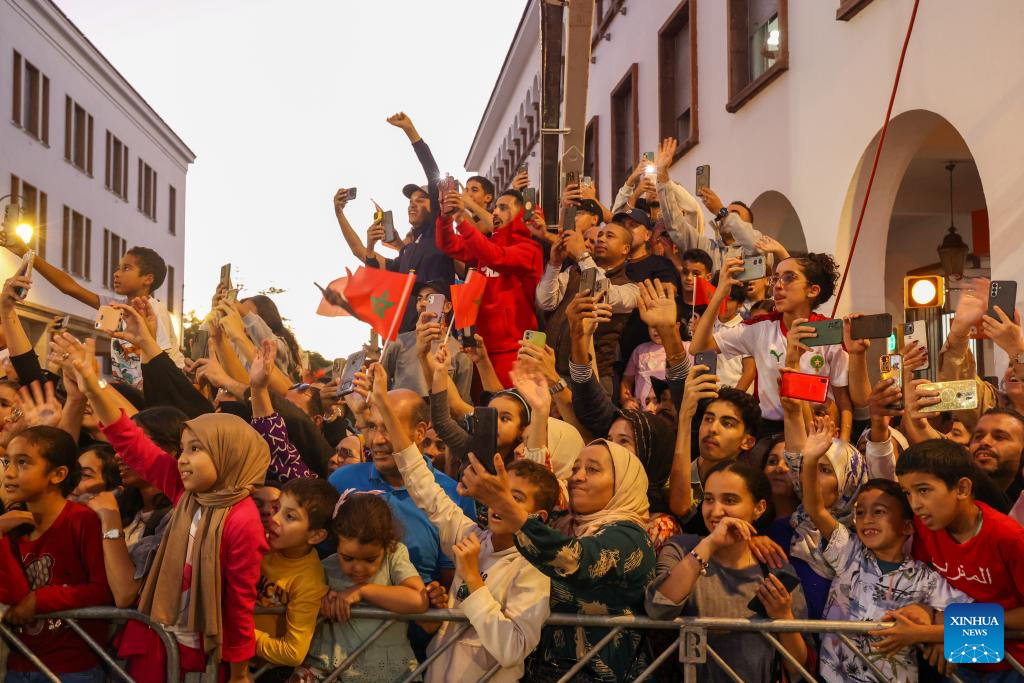 Crowds celebrate during a parade celebrating Morocco winning the U20 World Cup in Rabat, Morocco, Oct. 22, 2025. (Xinhua/Huo Jing)