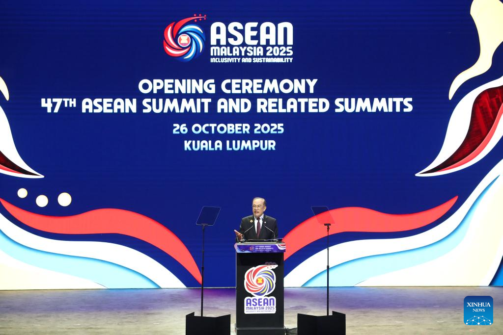 Prime Minister Anwar Ibrahim of Malaysia, the rotating chair of the Association of Southeast Asian Nations (ASEAN), speaks at the opening ceremony of the 47th ASEAN Summit and related summits in Kuala Lumpur, Malaysia, Oct. 26, 2025. The 47th ASEAN Summit and related summits kicked off in Kuala Lumpur, Malaysia, on Sunday under the theme "Inclusivity and Sustainability." (Xinhua/Cen Yunpeng)