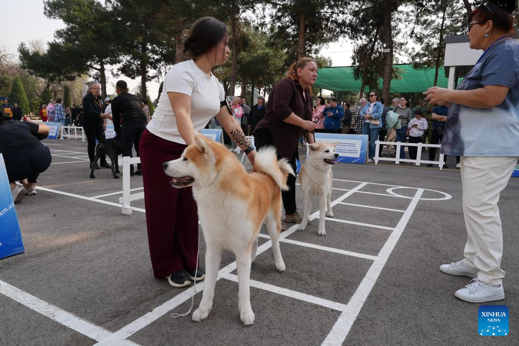 Dogs are seen during a showcase of a dog festival in Tashkent, Uzbekistan, Oct. 26, 2025. The event brought together a wide variety of dog breeds alongside professionally trained working dogs, as local visitors enthusiastically marveled at dog performances presented by experts. (Photo by Zafar Khalilov/Xinhua)