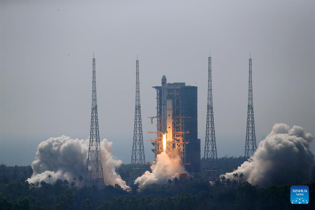 The rocket blasted off at 11:06 a.m. (Beijing Time) at the Wenchang Spacecraft Launch Site in the southern Hainan Province before sending the satellites into preset orbits.