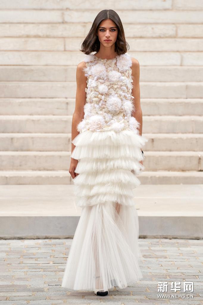 7月6日,模特在法國巴黎高級定制時裝周上展示香奈兒品牌2021/2022秋冬新品。