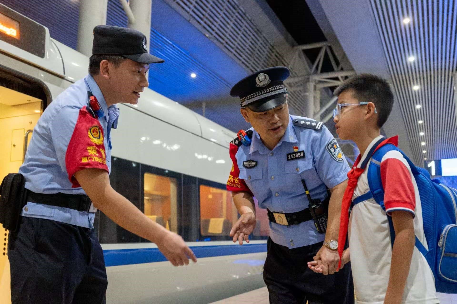 他牵头建起“海丝平安驿站”,联合车站、法院、医院和24个乡镇社区,组成“1+3+N”党建联盟,帮旅客找行李、调纠纷、宣反诈。2024年,“爱心基金”规模达3万多元,已帮138名困难旅客;针对独自出行的孩子,他推出“驿路童行”,民警全程陪安检、候车,还讲高铁安全知识,让“候鸟”出行无忧。