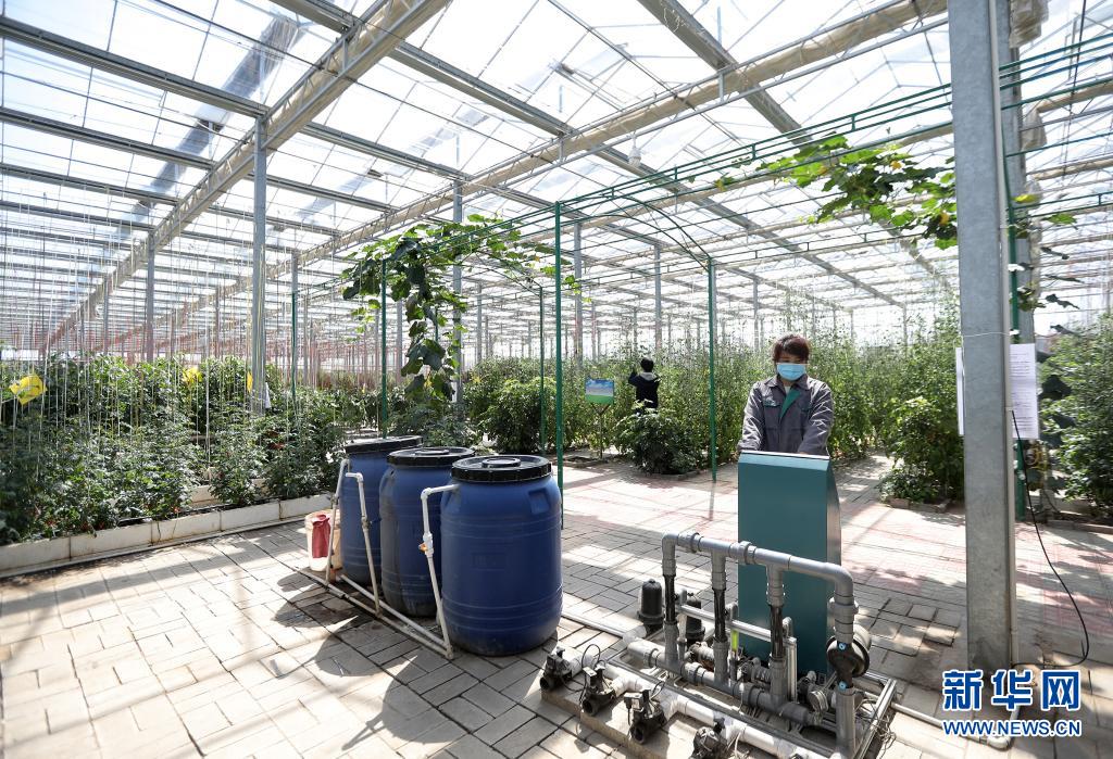 河北省饒陽縣一家現(xiàn)代農業(yè)示范園區(qū)工人在智慧溫室操作水肥一體化設施(2020年4月8日攝)。近年來,河北省饒陽縣在推進農業(yè)供給側結構性改革中,積極優(yōu)化農業(yè)產業(yè)結構,依托現(xiàn)代農業(yè)示范園區(qū)建設,將自動滴灌、遠程數(shù)據采集、智能電力溫控等先進“工業(yè)化”技術應用于農業(yè)生產。
