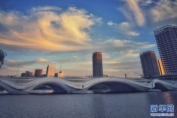 终阙晨霞照雾开(摄影:李光,拍摄地:山东省聊城市东昌府区繁森路1号东昌湖畔孔繁森同志纪念馆)