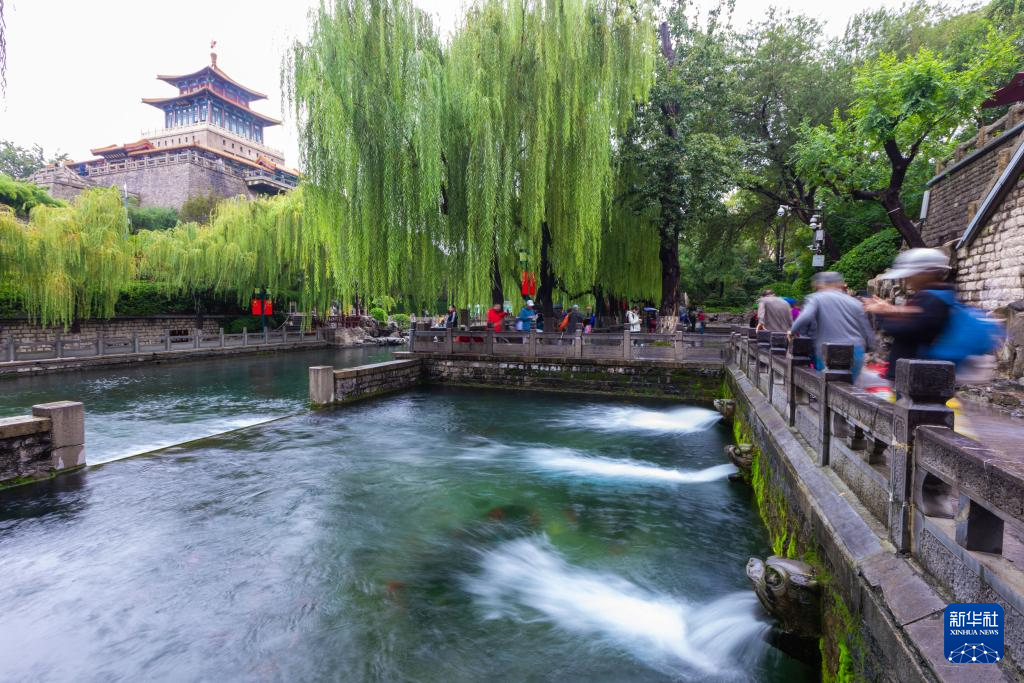 10月10日,游客在河北省承德市避暑山庄景区游玩。