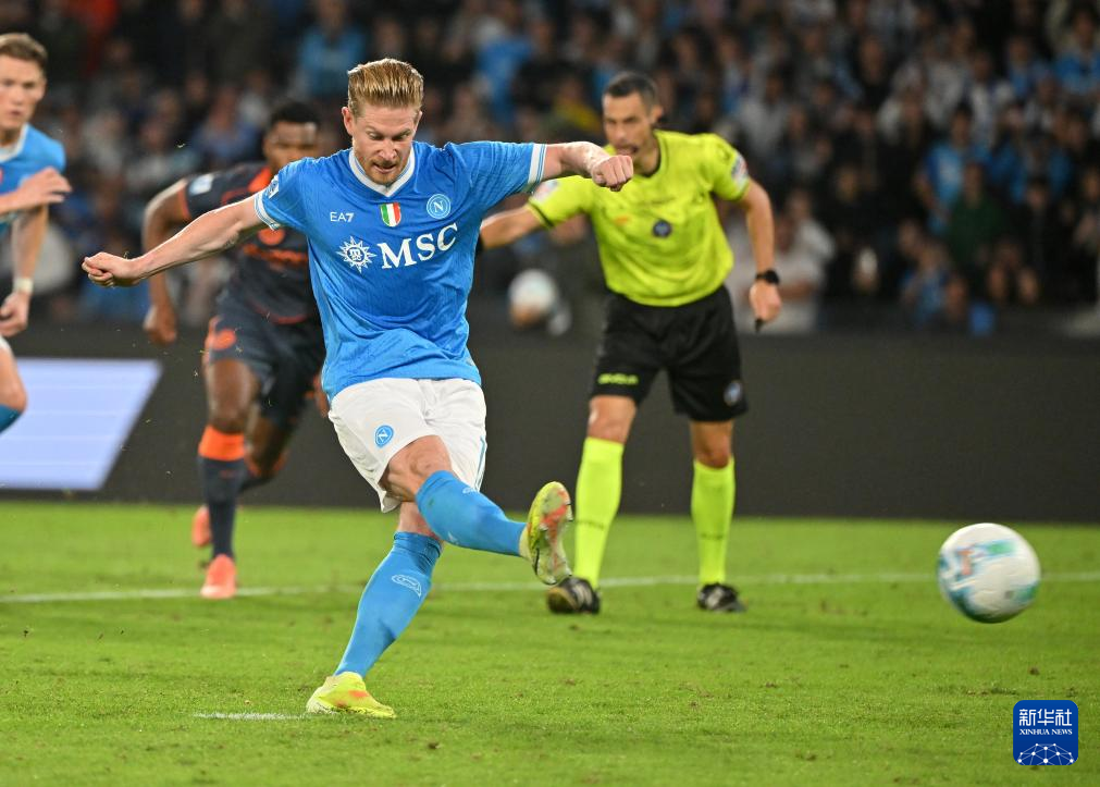 10月25日,那不勒斯队球员德布劳内在比赛中射入点球。