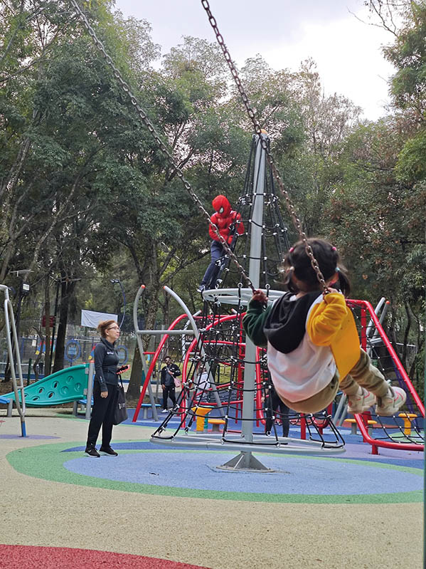 初来墨西哥城,印象最深的就是这样的街头公园——每个街区都有自己的露天游乐场。不论你住在何处,步行20分钟距离内一定有能让儿童尽情玩乐的地点,包括成片的滑梯、秋千等娱乐设施。这些五颜六色的娱乐设施规模有大有小,和活跃其中的儿童一道,早已成为这座城市鲜活脉动的一部分。