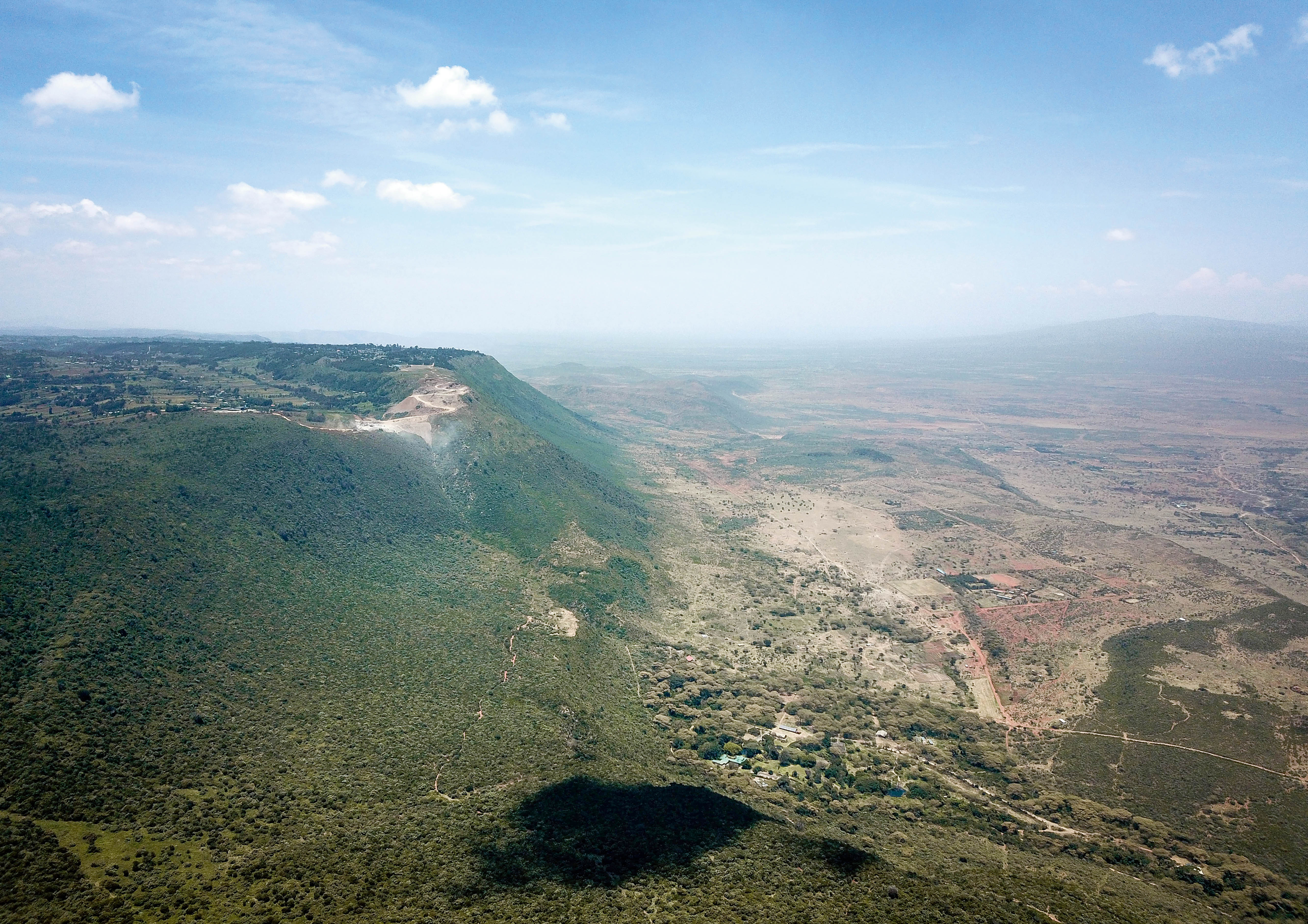 这是2024年9月10日在肯尼亚基安布郡拍摄的东非大裂谷一景(无人机照片)