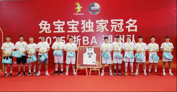 8 月 14 日,在第二赛程城市争霸赛的签约出征仪式上,兔宝宝与湖州队正式携手开启浙BA的征程。据了解,该赛事是2025年浙江省规模最大的群众篮球赛事,全省11个地级市、90个县(市、区)均将出战。