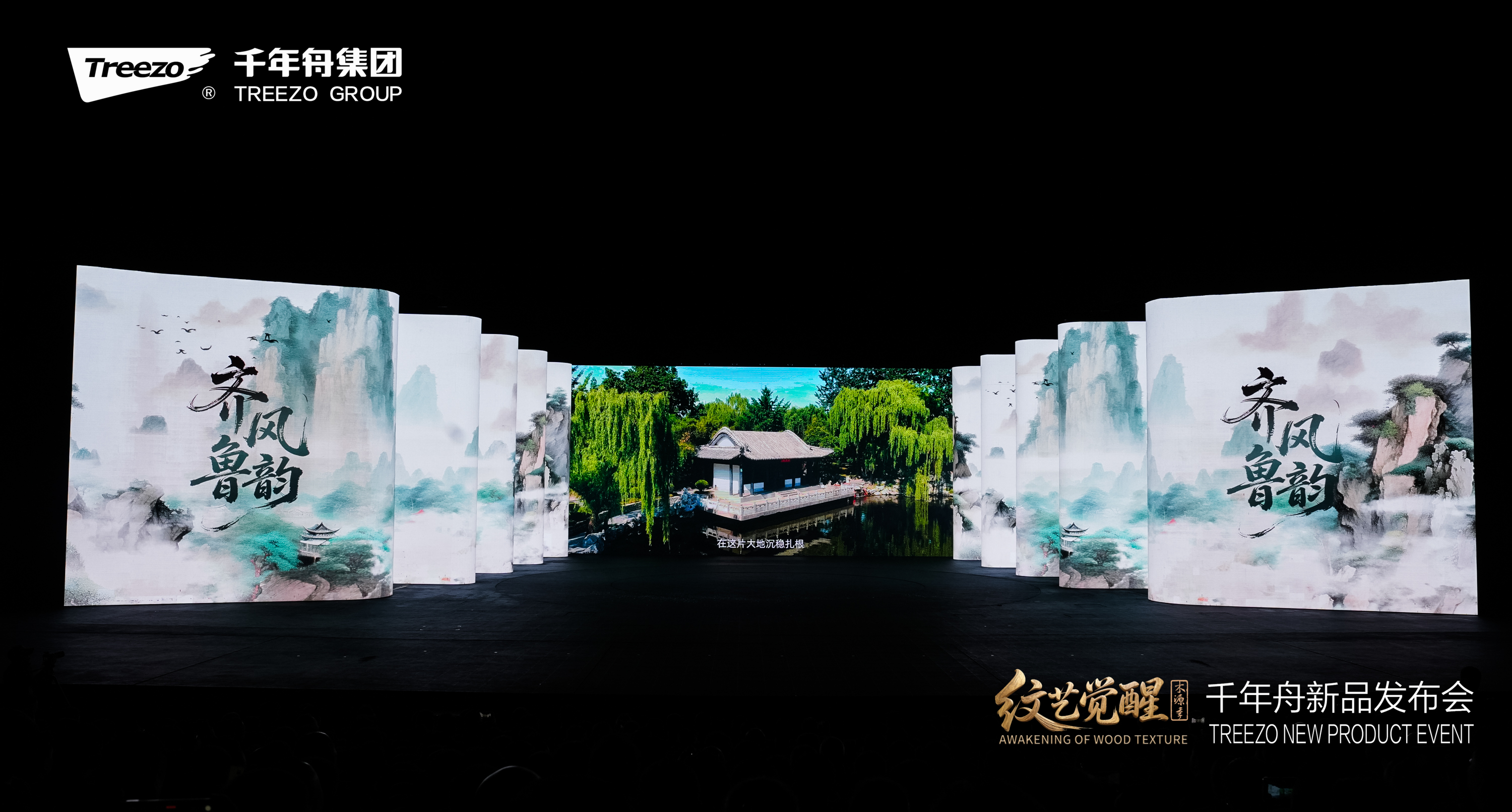 其中,“纹艺觉醒・大师作”聚焦地域文化与非遗技艺的当代转化,此前已打造“人文良渚”“锦绣苏韵”两大系列;今年,千年舟团队深入齐鲁文化腹地,全新推出“齐风鲁韵”系列,通过现代设计语言对当地瑰丽文物进行转译与重构;同时,品牌还携手国遗大师黄小明,将传统“福”文化融入板材花色设计,真正让非遗技艺走进寻常百姓家的日常家居场景。