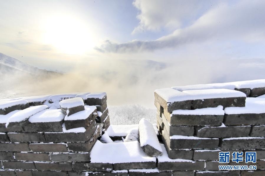 3月1日在北京市懷柔區拍攝的雪后箭扣長城美景。新華社發(劉憲國 攝)