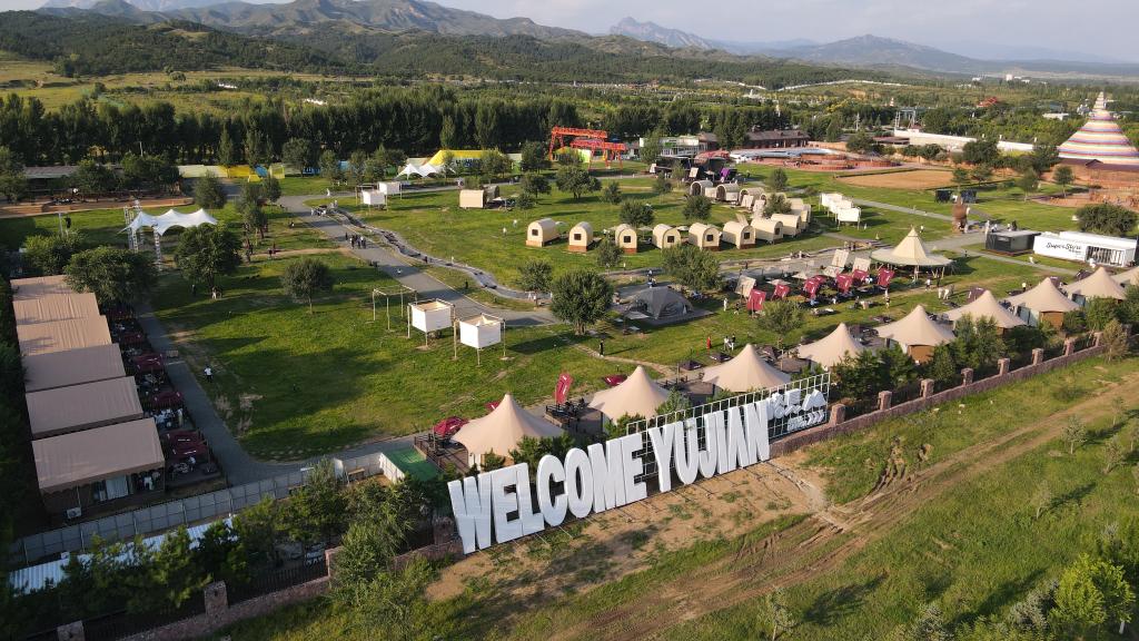 8月27日,游客在峪见小镇中露营游玩。新华社发