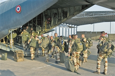 ????參加“藪貓行動”的“食雀鷹部隊”士兵登機前往馬里