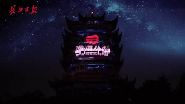 ▲黃鶴樓在夜晚上演絢麗的光影秀。圖片來源:長江日報(bào)