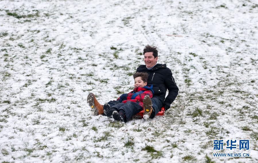 1月24日,人們在英國倫敦享受雪趣。新華社記者韓巖攝