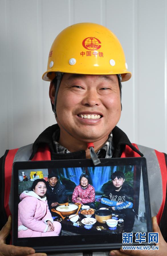 陳歡樂,40歲,安徽省濉溪縣人。“帶著大伙出來打工快一年了,就地過年,說不想家,那是假的,響應(yīng)國家政策嘛。過年工地上發(fā)肉發(fā)菜,還有節(jié)日補(bǔ)貼,你們在家放心吧,等忙完這段就回家。”這是陳歡樂與家人照片的合影(2月4日攝)。