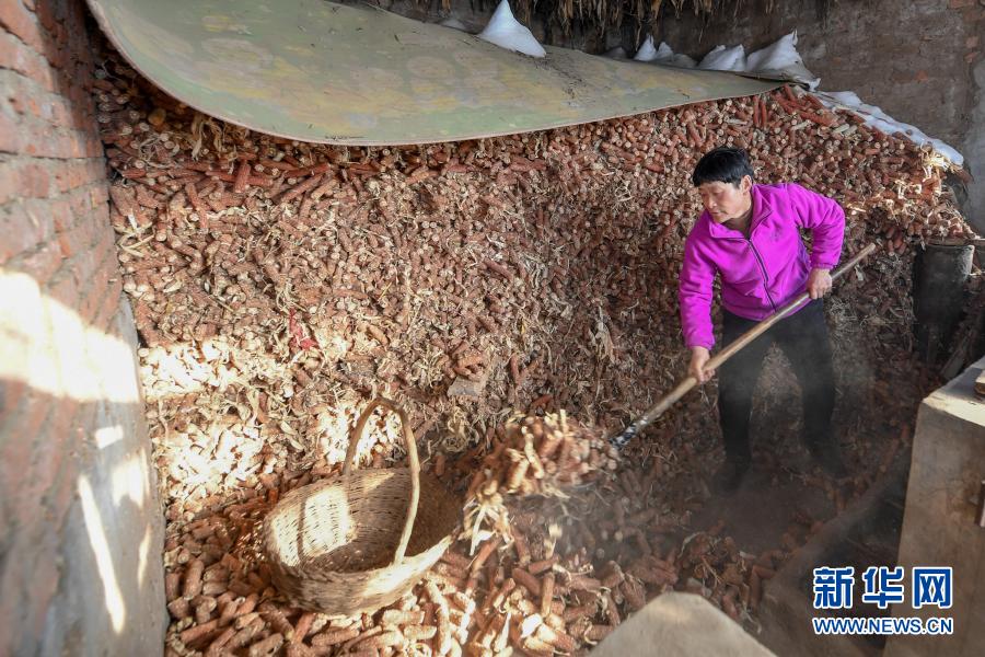 2月9日,在吉林省長春市農(nóng)安縣楊樹林鄉(xiāng)牛尾巴山村,付寶印的母親鐘士輝準備燒火用的玉米棒。新華社記者 張楠 攝