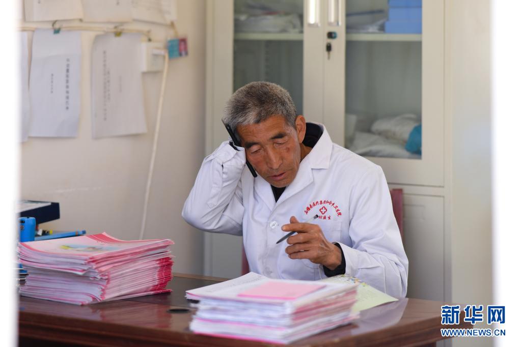 在山西省石樓縣鐵頭村衛生室,張尚保在接聽詢診電話(3月24日攝)。新華社發(劉亮亮 攝)