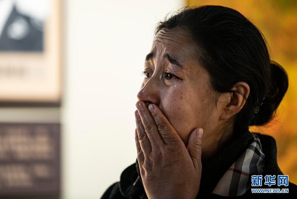 4月3日,在新疆警史館,瑪依努爾追憶愛人艾熱提時掩面而泣。