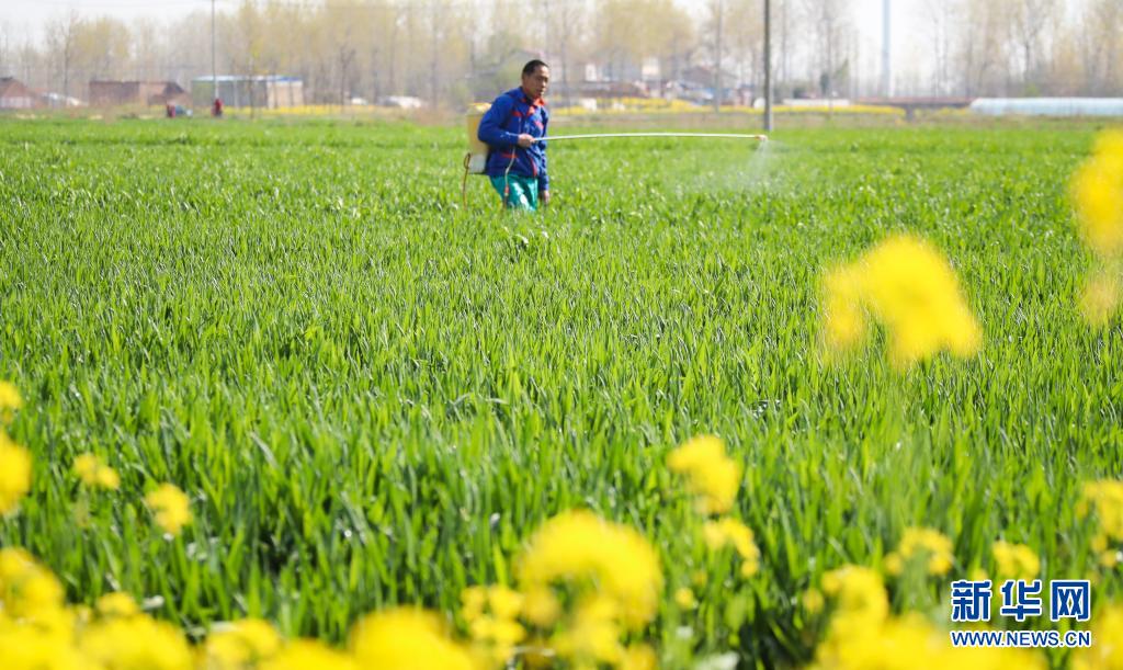 4月5日,江蘇省淮安市淮陰區凌橋村村民在噴灑農藥。