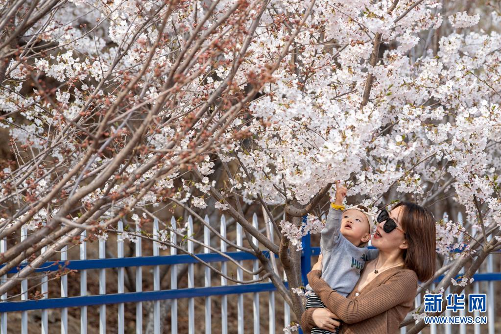 4月7日,游人在山西省太原市玉泉山城郊森林公園賞花。近日,山西省太原市玉泉山城郊森林公園栽植的近25萬株各類櫻花競相盛開,吸引不少市民前來觀賞。新華社記者 楊晨光攝