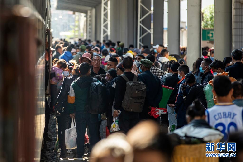 人們準備乘坐5633次列車出行(4月11日攝)。新華社記者 沈伯韓 攝