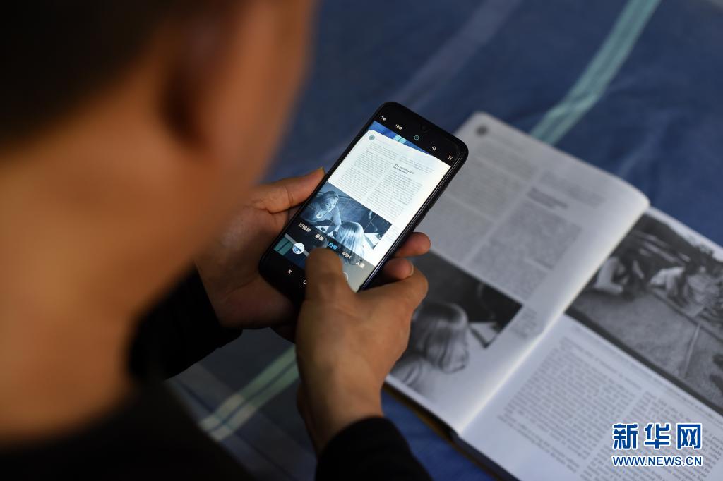 包珍妮無(wú)法正常閱讀紙質(zhì)書(shū)籍,父親包宗鋒將書(shū)的內(nèi)容分頁(yè)拍照供她在電腦上學(xué)習(xí)(4月14日攝)。