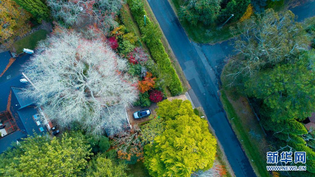 這是5月3日在澳大利亞悉尼西部藍(lán)山地區(qū)拍攝的多彩的街道(無(wú)人機(jī)拍攝)。