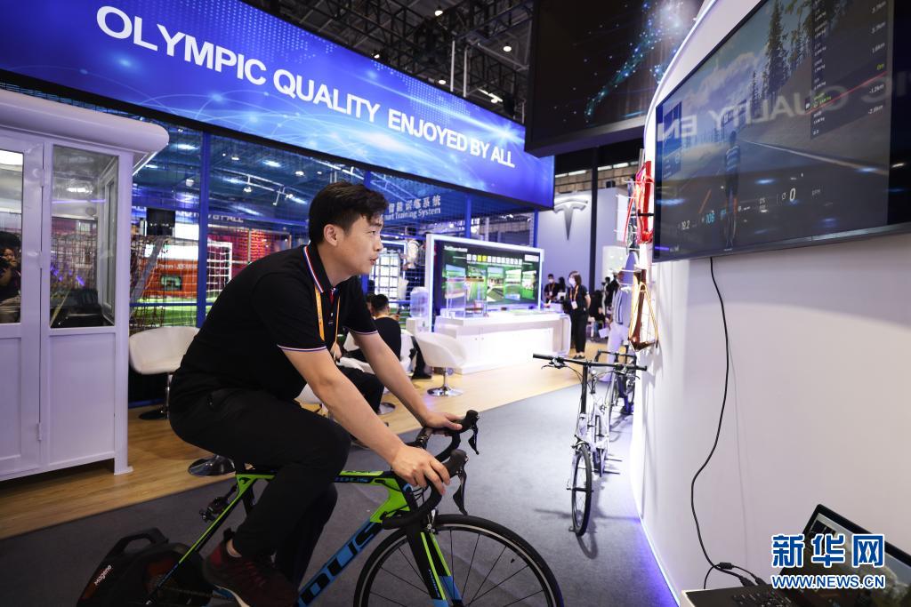 首屆中國國際消費品博覽會在海南省??谑信e行,其中包括旅居生活和服務消費等展區。參展商帶來的運動器械等產品吸引了諸多觀眾現場體驗、咨詢。