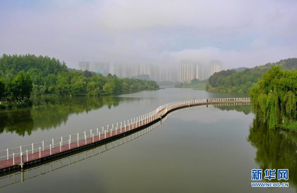 5月8日,貴陽市觀山湖區閱山湖公園景色怡人(無人機照片)。