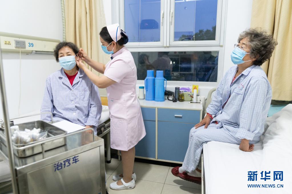 5月10日,在北京按摩醫院,病房護士為住院病人貼耳豆。