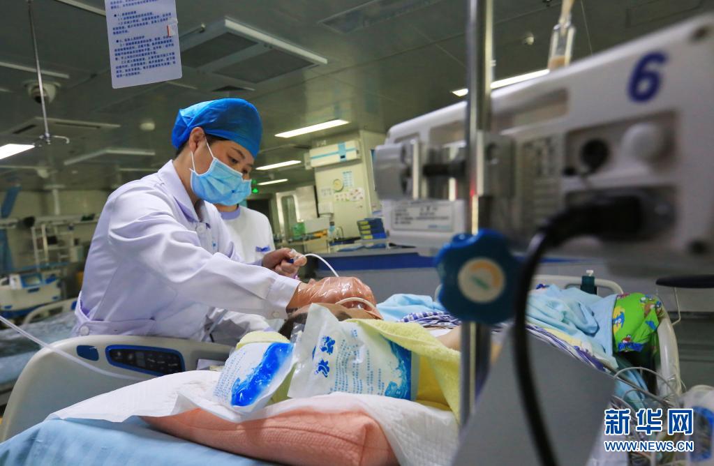 5月11日,在貴州省畢節(jié)市第一人民醫(yī)院重癥醫(yī)學(xué)科病房,一名護(hù)士對(duì)患者進(jìn)行護(hù)理。