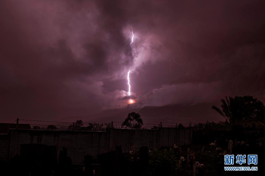 這是5月13日在印度尼西亞北蘇門答臘省拍攝的錫納朋火山上空的閃電(長(zhǎng)時(shí)間曝光照片)。