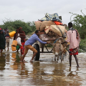 5月22日,受洪水影響的人們從索馬里喬哈爾撤離。