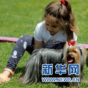 5月23日,一只寵物犬在羅馬尼亞首都布加勒斯特參加選美比賽。當日,市民帶著愛犬參加在布加勒斯特舉行的狗狗選美比賽。隨著羅馬尼亞疫情好轉,各種文化娛樂活動也逐步放開。新華社發(克里斯泰爾攝)