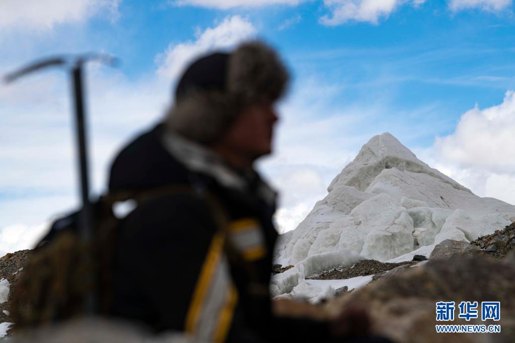 別克米爾扎·圖爾達(dá)力在適應(yīng)性練習(xí)中從冰川旁經(jīng)過(guò)(5月16日攝)。新華社記者 胡虎虎 攝