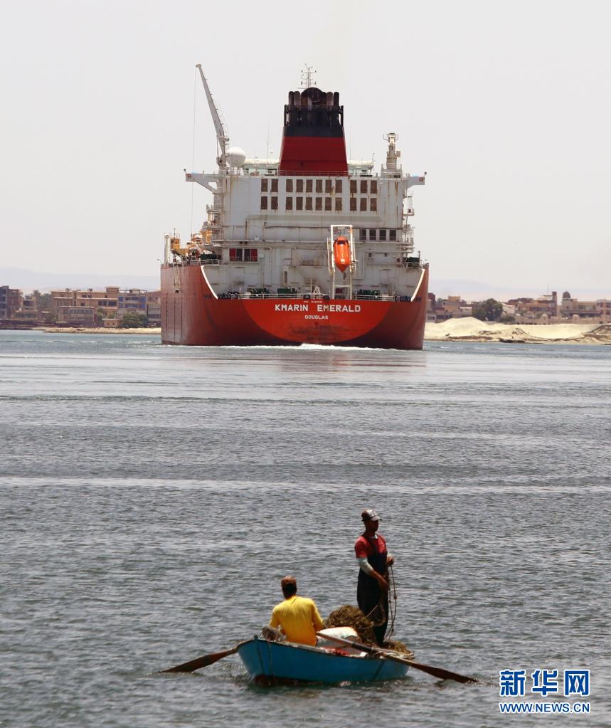 這是5月30日在埃及伊斯梅利亞省拍攝的航行在蘇伊士運河上的貨船。