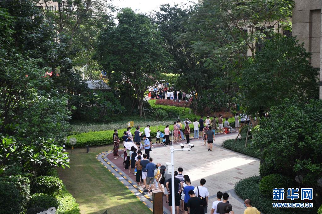 5月27日,在廣州荔灣區(qū)白鶴洞街道一小區(qū)內(nèi),居民排隊(duì)進(jìn)行核酸檢測(cè)。新華社記者 鄧華 攝