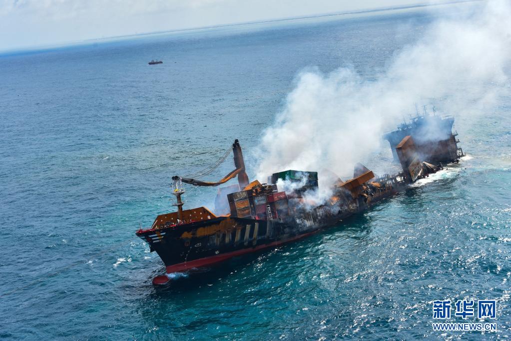 這是6月2日在斯里蘭卡科倫坡港附近拍攝的逐漸下沉的起火貨船“X-PRESS PEARL”號。