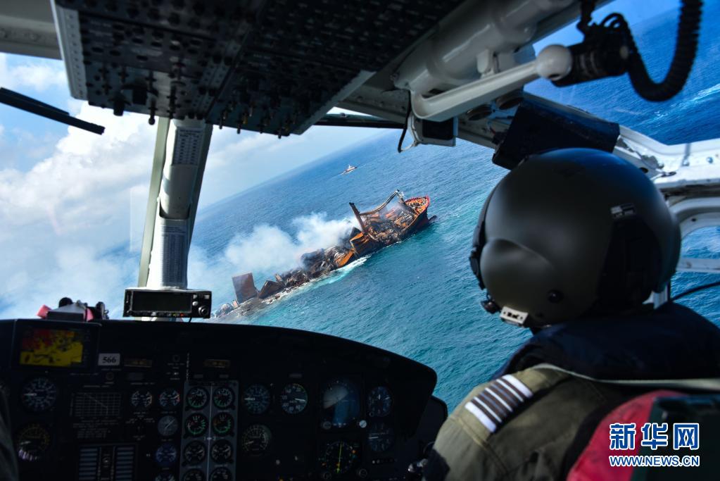 6月2日,斯里蘭卡總統戈塔巴雅下令將起火貨船“X-PRESS PEARL”號拖向遠離科倫坡港的深海區,以防引發更大的環境災難。“X-PRESS PEARL”號貨船5月20日抵達科倫坡港西北約9.5海里錨地時發出火警求救信號。斯里蘭卡海洋環境保護局官員5月28日表示,在科倫坡港附近起火燃燒的“X-PRESS PEARL”號貨船預計將會引發嚴重環境災難。新華社發(斯里蘭卡空軍媒體處供圖)
