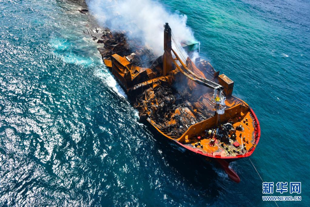 6月2日,斯里蘭卡總統戈塔巴雅下令將起火貨船“X-PRESS PEARL”號拖向遠離科倫坡港的深海區,以防引發更大的環境災難。“X-PRESS PEARL”號貨船5月20日抵達科倫坡港西北約9.5海里錨地時發出火警求救信號。斯里蘭卡海洋環境保護局官員5月28日表示,在科倫坡港附近起火燃燒的“X-PRESS PEARL”號貨船預計將會引發嚴重環境災難。新華社發(斯里蘭卡空軍媒體處供圖)