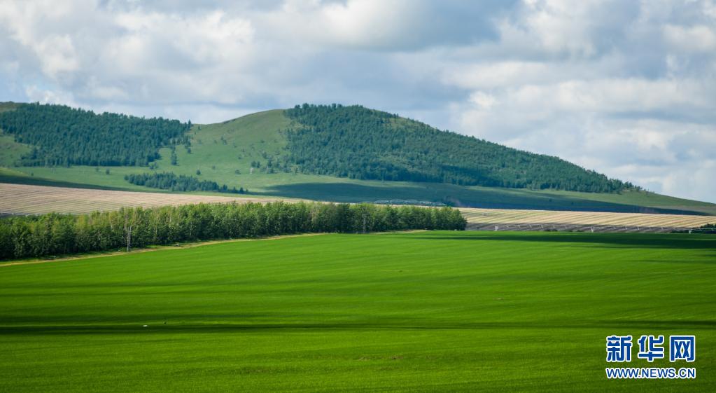 這是內蒙古呼倫貝爾332國道旁的森林草原風光(6月10日攝)。