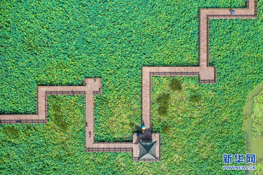 這是南寧市南湖內的觀景棧道(6月14日攝,無人機照片)。新華社記者 徐海濤 攝