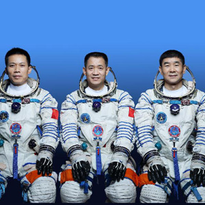 神舟十二號(hào)飛行任務(wù)乘組:聶海勝(中)、劉伯明(右)、湯洪波(左)。 新華社發(fā)(徐部 攝)