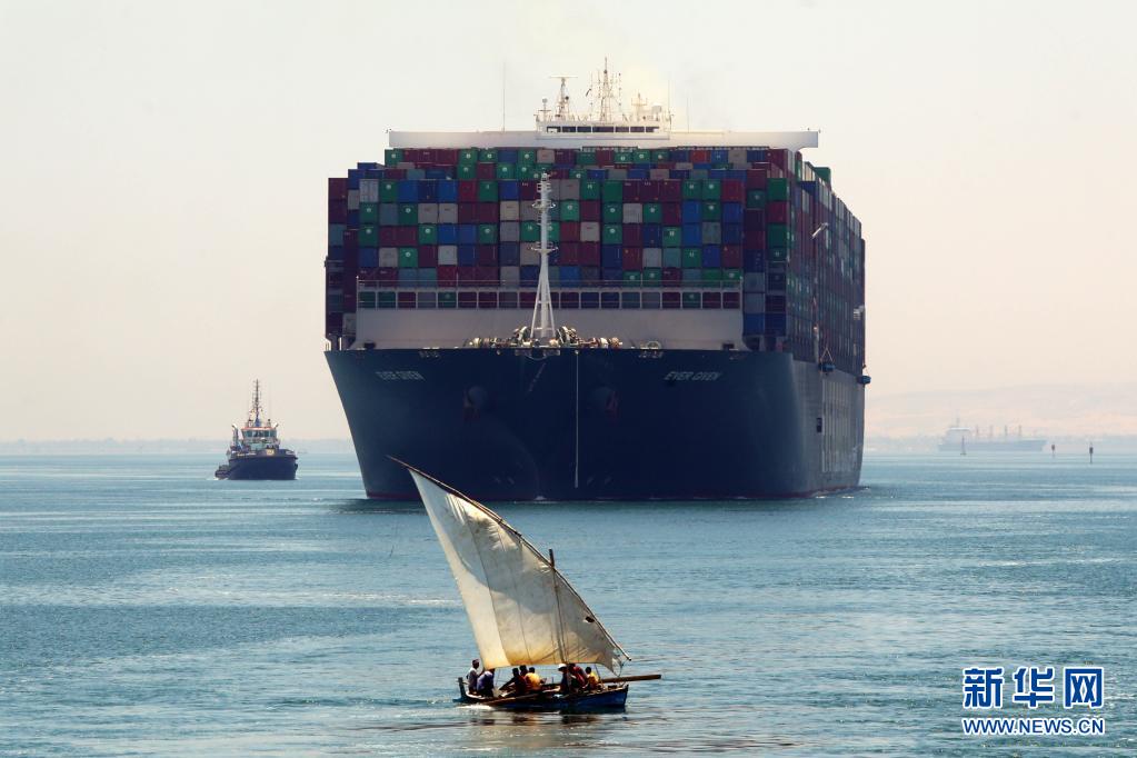 這是7月7日在埃及伊斯梅利亞省拍攝的航行在大苦湖上的“長賜”號貨輪。